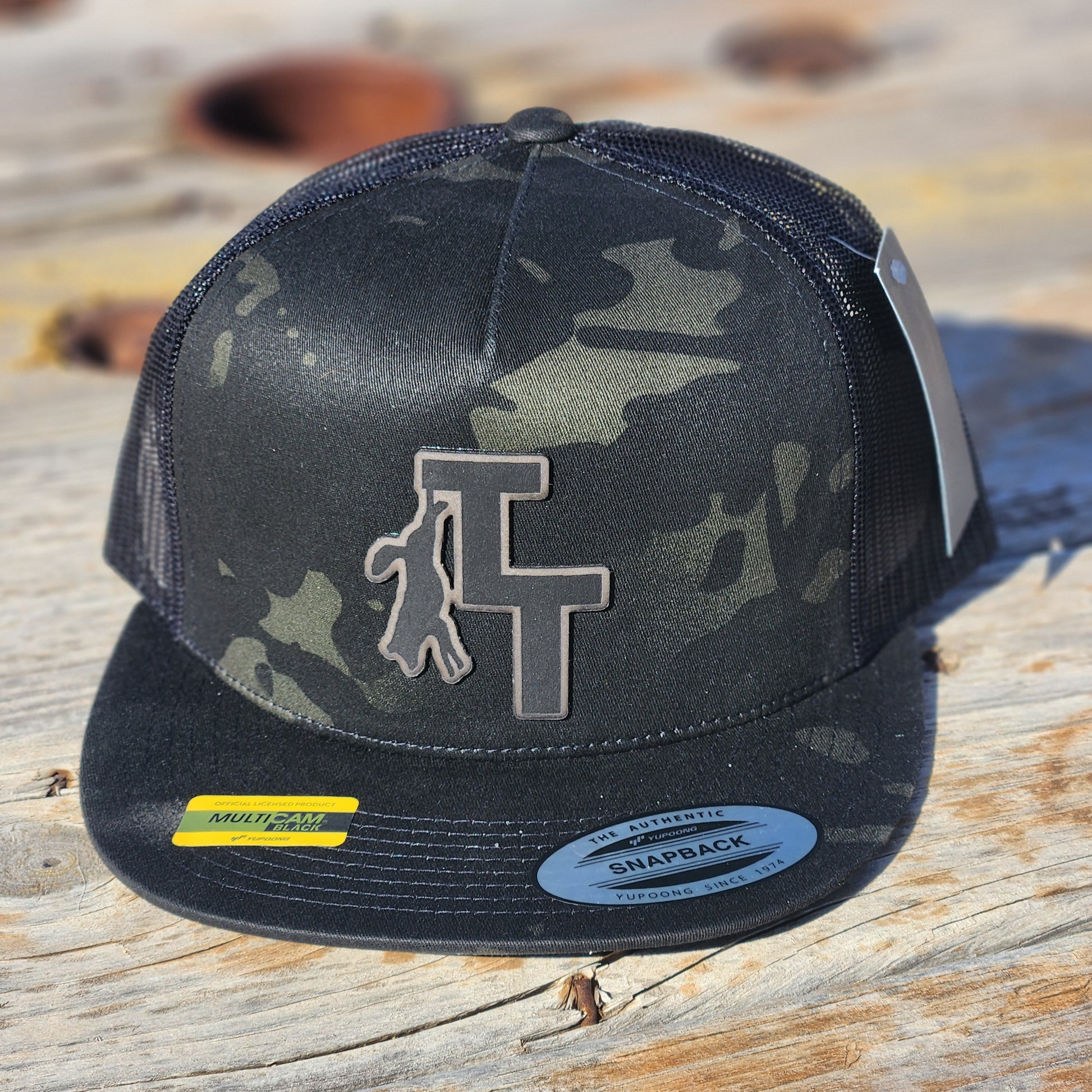 Top-of-the-line leather patch TT Yupoong flat bill hat.
